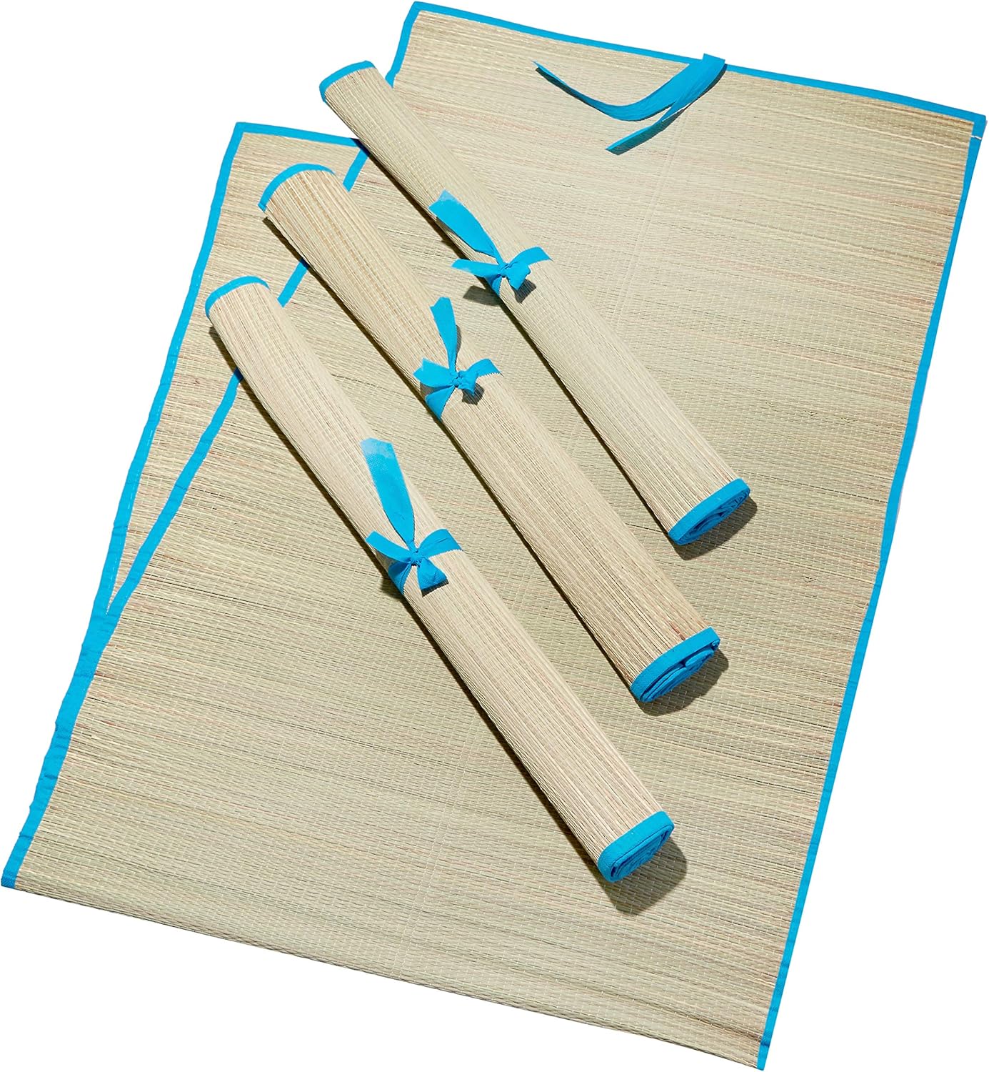 COLOR NOT GURANTEED FOR ONLINE ORDERSThis straw beach mat is 302n wide and 60in long. It's light weigh and rolls up for easy storage. The edge is trimmed with fabric and the short string tie keeps it rolled when you are not using it. Great for the beach or kicking back by the pool while catching some rays.Specifications
