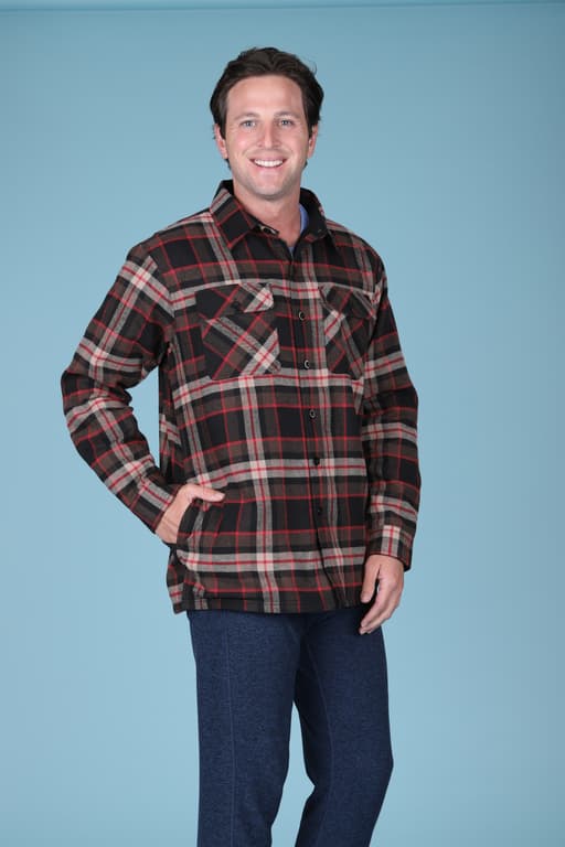 Men's 55% Cotton 45% Polyester Button Down Plaid Shirt Jacket With Matching Color Fleece Lining. 2 Chest Pockets & 2 Seam Hand Pockets. Available Colors: #231 Apple Cinnamon and #238 Red/Black. Sizes: M-3XL. Machine Wash & Dry. Imported.Specifications
