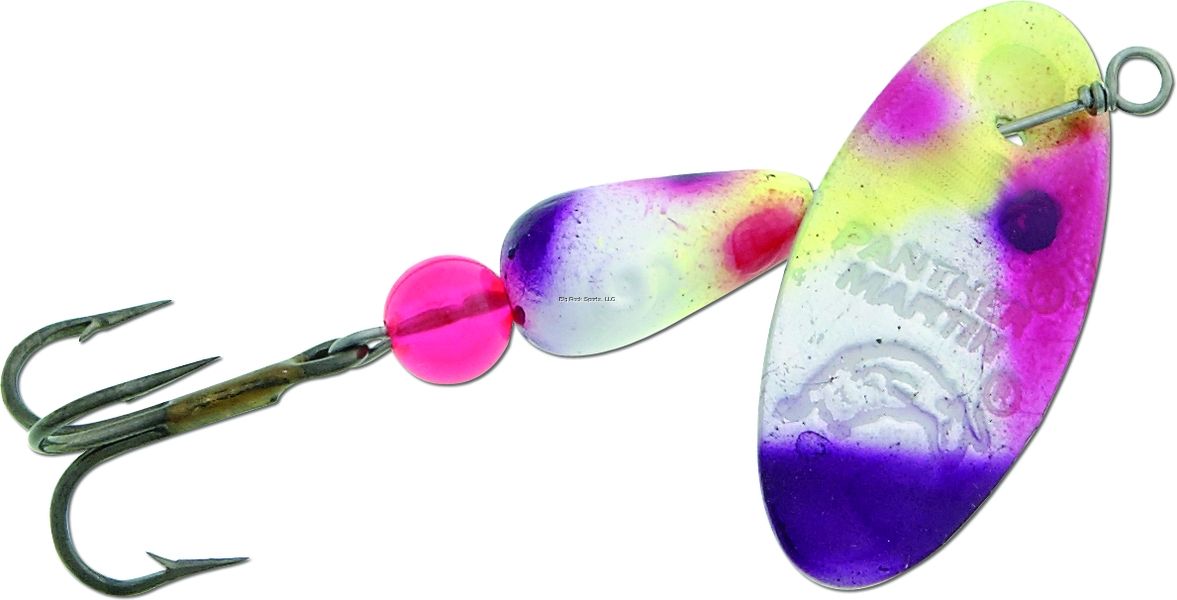 A great choice for clear or murky waters; Easy spinning ultraviolet blade is irresistible to fish; Fish see Ultraviolet colors as if under Blacklight; Particularly effective on cloudy days; Six eye-popping patterns; Unique convex/concave shape of blade sends out sonic vibrations