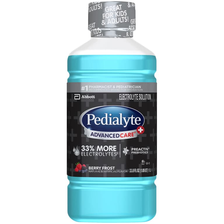 Pedialyte AdvancedCare Plus is formulated to replenish more of the electrolytes you may lose due to vomiting, diarrhea, or extreme perspiration caused by excessive heat or prolonged exercise. Pedialyte AdvancedCare Plus also has PreActiv Prebiotics to help promote a healthy digestive system.Specifications