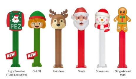 (WE CANNOT GUARANTEE A SPECIFIC COLOR OR STYLE TO BE IN STOCK) CELEBRATE CHRISTMAS WITH PEZ CHRISTMAS THEMED DISPENSERS. THE STYLES MAY VARY. THESE DISPENSERS COME WITH PEZ CANDY REFILLS IN EACH PACK, ALL INDIVIDUALLY WRAPPED. THESE SWEET TREATS ARE PERFECT FOR STOCKING, OR FOR A GIFT TO THOSE SPECIAL PEOPLE IN YOUR LIFE.Specifications
