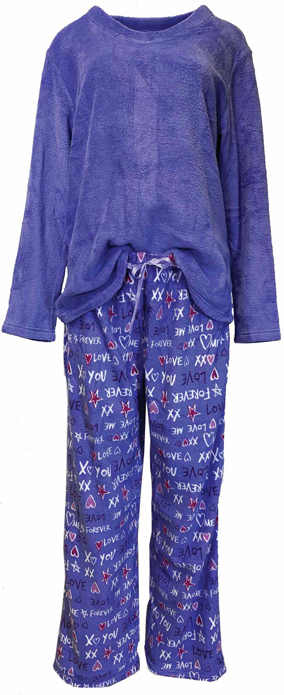 A PLUSH AND SOFT PAJAMA SET TO KEEP YOU WARM AND COZY ON THOSE COLD FALL AND WINTER NIGHTS, OR PERFECT FOR LOUNGING. THE SET OFFERS AN ELASTIC WAISTBAND WITH DRAWSTRING AND V NECK TOP.Specifications