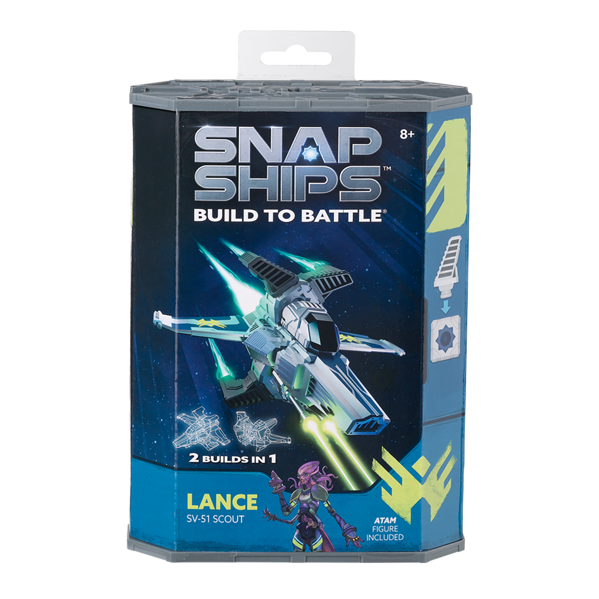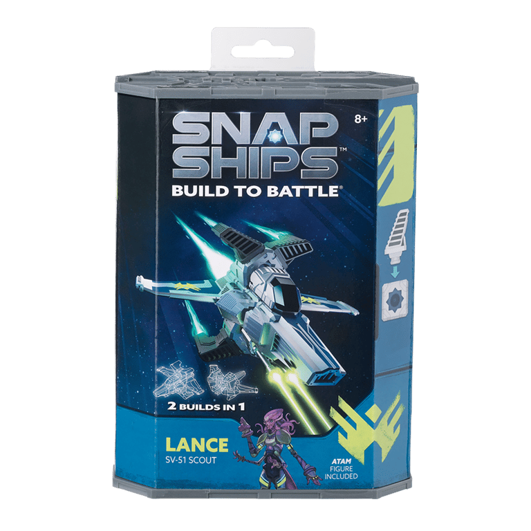 The Snap Ships set for Lance includes instruction for two different builds that you assemble yourself and then engage in battle with real shooting weapon play! Lance SV-51 Scout is known to be fast and agile, and in the hands of a capable pilot such as Atam, the Forge’s alien tech guru, it is almost untouchable. Add the mysterious UJU tech piece that’s included, and you’re sure to defeat the Komplex! Download the free Snap Ships app for more action play and more ship build ideas! All Snap Ships sets are modular and designed to be combined to build whatever you can imagine!The Komplex spreads through the galaxy and growing stronger with each species they defeat and assimilate. To fight them, humanity relies on an elite team, the Forge, who pilots their own armada of spacecraft known as Snap Ships. Now YOU can Build to Battle! Snap Ships is a versatile building system for creating multiple crafts with action play, and all sets and pieces are interchangeable, so kids can build however they want.Specifications