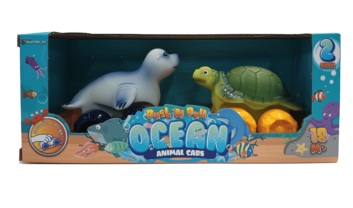 2 pack vroom and zoom vinyl sea life play set with Turtle and sea lion friction different colors to entertain the kids and let imagination run wildSpecifications