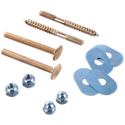Consumer Pack; Contains two 1/4 inch x 2-1/4 inch bolts two 1/4 inch x 2-1/4 inch screws four nuts and four washers; Easy to Install; Secures toilet bowl to floor