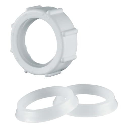 Contains one slip nut with washer and one reducing washer; Use with1-1/2 hookups