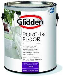 Glidden Porch & Floor, interior/exterior, paint + primer, is designed to enhance your wood and concrete surfaces, especially floors, steps and railings and can also be used on properly prepared horizontal masonry, wood and metal substrates.Specifications