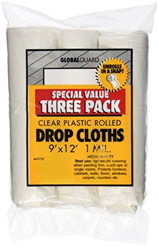Clear plastic 3-pieces 9 ft. x 12 ft. rolled plastic drop cloth that is 1 mil thick. Used to protect surface when painting and during construction. Use to protect surfaces from spills, dust, and debris.Specifications