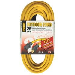 Prime's outdoor extension cords are water, weather and abrasion resistant and flame retardant. These bright yellow extension cords are made for work on job sites and handle up to a 15 amp load.Specifications