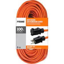 Prime Wire outdoor extension cords are water & weather resistant flame retardant and made to work. They are ideal for use with light-duty power tools lawn and garden equipment rated up to 10 amps. The strain-reliefs are oversized to prevent the wire from seperating from the connector.Specifications