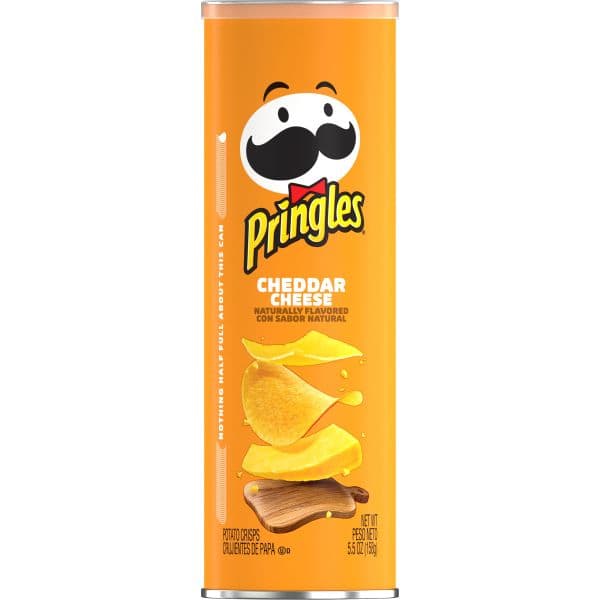 This deliciously seasoned Pringles Potato Crisps are great for the office, pack a snack for school, bring them in the car, or share a stack with friends. However you eat them, you’ll love the fun shape and delicious taste of Cheddar Cheese Flavored Pringles Potato Crisps.Specifications