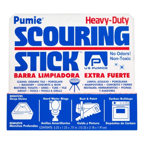 Make sure an entire space is clean and shining when using the Pumie Scouring Stick. This handy device can take on any tough mess, including unsightly toilet bowl rings, unwanted paint on tiles or even baked-on foods. The heavy-duty scouring stick has no odors and is non-toxic. An ideal alternative for safe cleaning in the home. It contains no detergents, acids or added chemicals for even more benefits. It works on a variety of surfaces such as porcelain, ceramic tiles, masonry and iron. This scouring stick is a truly versatile product that can be used both indoors and outside.Specifications