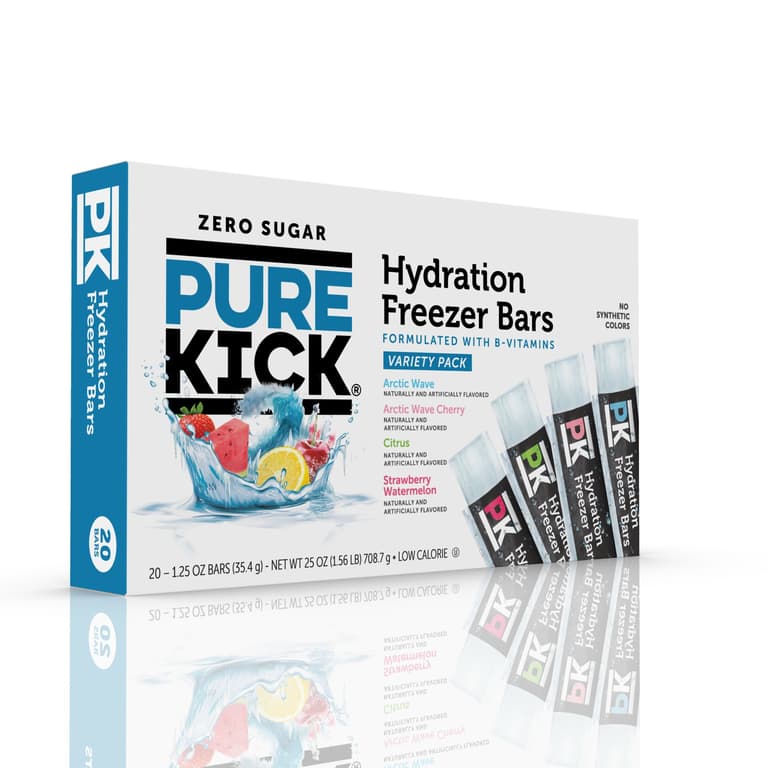 Pure Kick Hydration Freezer Bars offer a refreshing way to rehydrate after sports, workouts, or outdoor fun. Simply freeze them ahead of time and enjoy a cool burst of hydration whenever you need it. They’re perfect for stocking up and sharing with teammates or family.Specifications