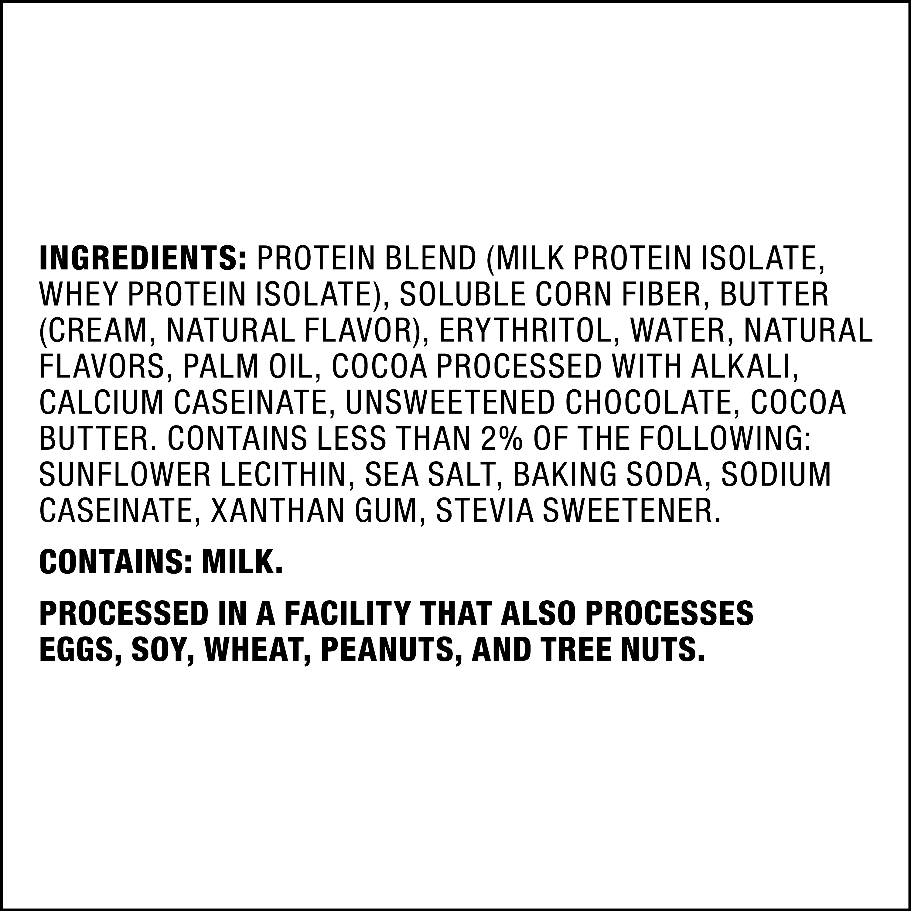 11g of fiber; 15g protein; 5g net carbs; Dairy-based proteins to provide you with 9 essential amino acids; Less 1g of sugar