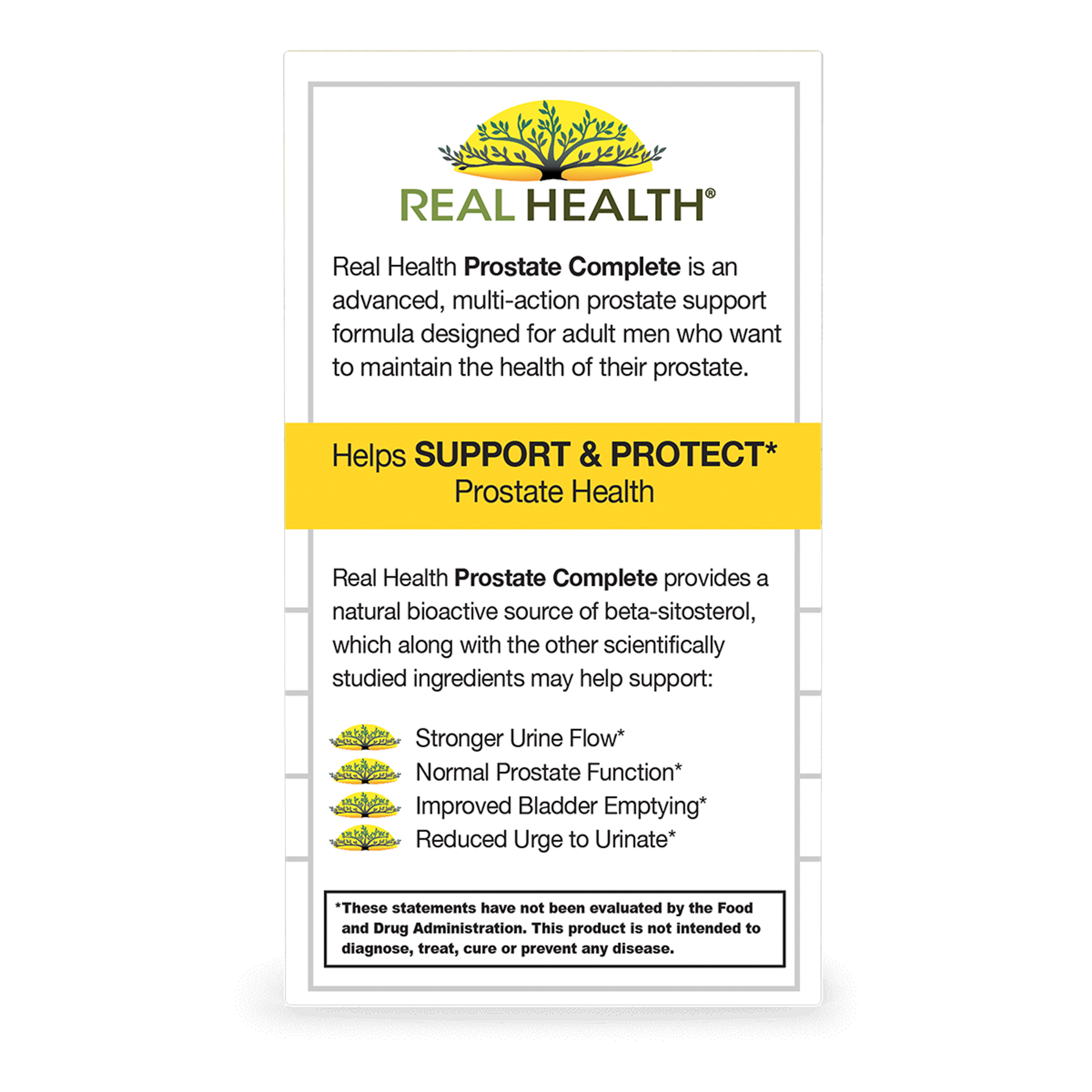 The Prostate Complete Formula. It's the most powerful, natural solution you can find for prostate health. Look, prostate health is not just your fathers problem. Prostate health is a serious issue that affects every part of a man's life. The frequent urination many men experience can make it difficult to visit friends, dine out, or see a movie. It can even interrupt important sleep. The Prostate Complete Formula is a strong, targeted, natural solution designed to support. Healthy Prostate Function. Normal Prostate Size. Free Urinary Flow. Now there is a strong, targeted approach to help you maintain prostate health. The Prostate Complete Formula - our newest prostate product - is an all-natural, comprehensive formulation that includes clinically studied amounts of all of the standardized extracts that have been shown to support overall prostate health, all in one capsule a day. This comprehensive formula contains select ingredients thoroughly researched and clinically studied to help support healthy prostate function and free urinary flow. More and more doctors are recommending the use of Saw Palmetto extract, the powerful antioxidant Lycopene, Pumpkin Seed extract, and Selenium for prostate health. The Prostate Complete Formula provides you with recommended levels of all these targeted ingredients and more in one unique and comprehensive formula. If your doctor recommends that you start taking an extract product, or if you are already taking one, get the full spectrum of the clinically studied extracts with The Prostate Complete Formula. You've got a life - keep it complete with the Prostate Complete once a day.Specifications