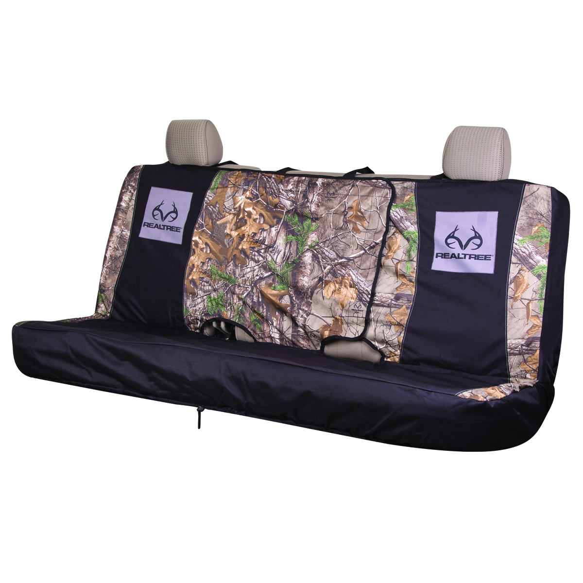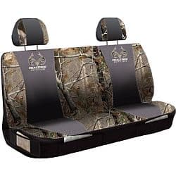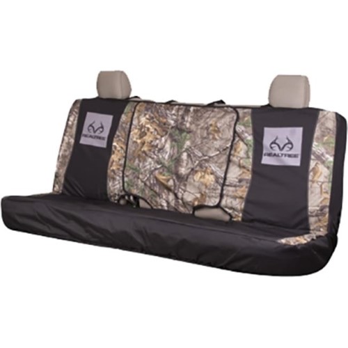 Protect the back seat of your truck or cover worn seats while adding a solid dose of camouflage style with the Realtree Mid-Size Camo Bench Seat Cover. This durable polyester cover protects your rear bench seat from water, dirt and debris and features the Realtree AP camo pattern and appliquE Realtree logos that show off your love of the outdoors.Specifications