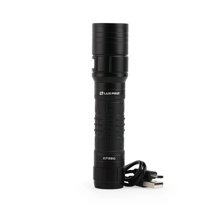 At the heart of the XP980 is its exceptional brightness. Designed for convenience and comfort, the XP980 features a TACKGRIP handle that provides a secure and comfortable grip, ensuring that the flashlight stays firmly in your hand, even in wet or slippery conditions. Additionally, the included Micro USB charge cable allows for hassle-free recharging, so you can quickly power up your flashlight whenever needed. Built with precision-engineered LPE optics, the XP980 delivers superior light quality and consistency, ensuring optimal performance in any situation. Whether you're searching for lost items or navigating through unfamiliar terrain, this flashlight delivers bright, uniform light that illuminates your path with clarity and precision.Specifications