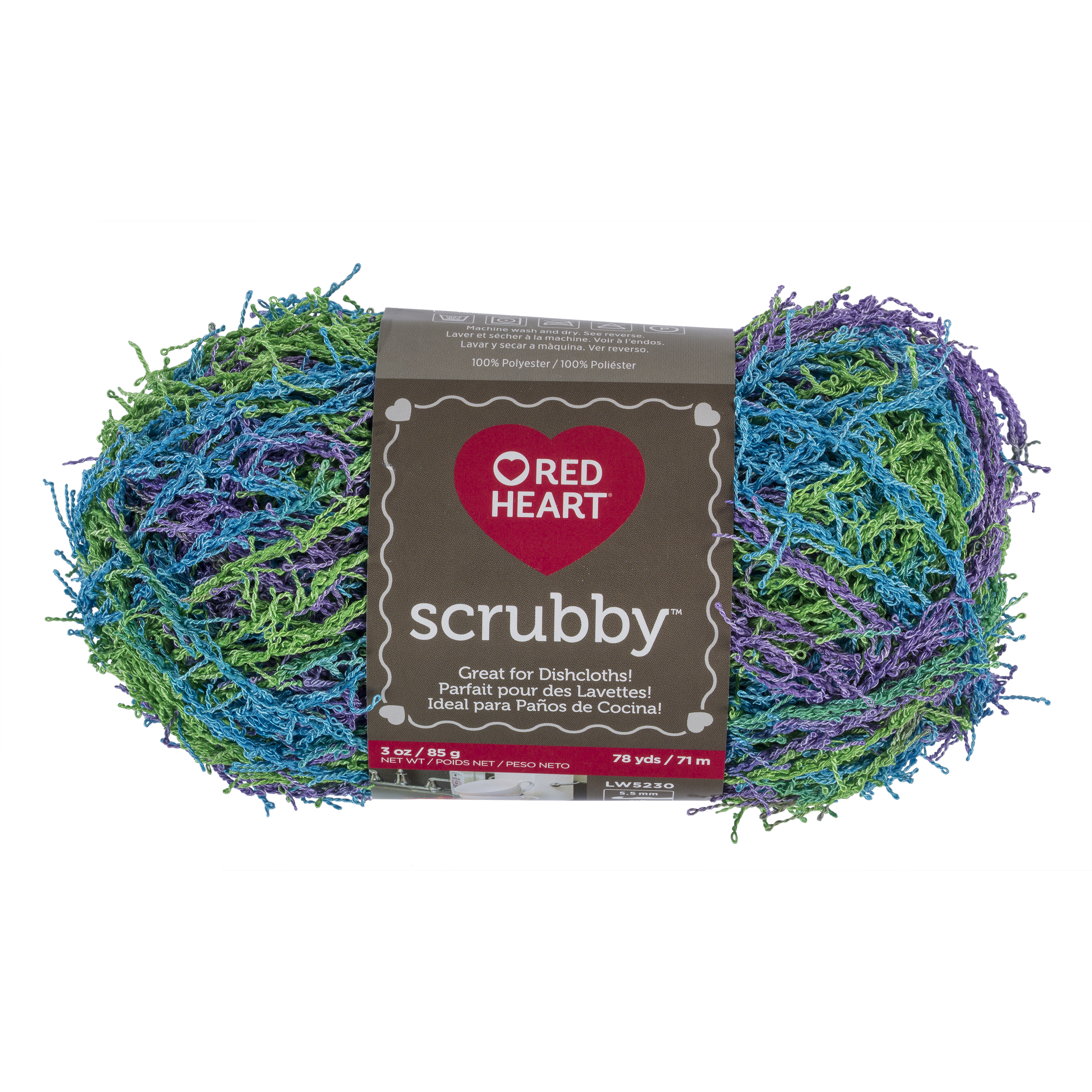 Coats & Clark Red Heart Scrubby yarn is uniquely textured and is great for knit and crochet washcloths and dishcloths. Machine wash warm on a gentle cycle, tumble dry low, do not iron, dry cleanable.Specifications