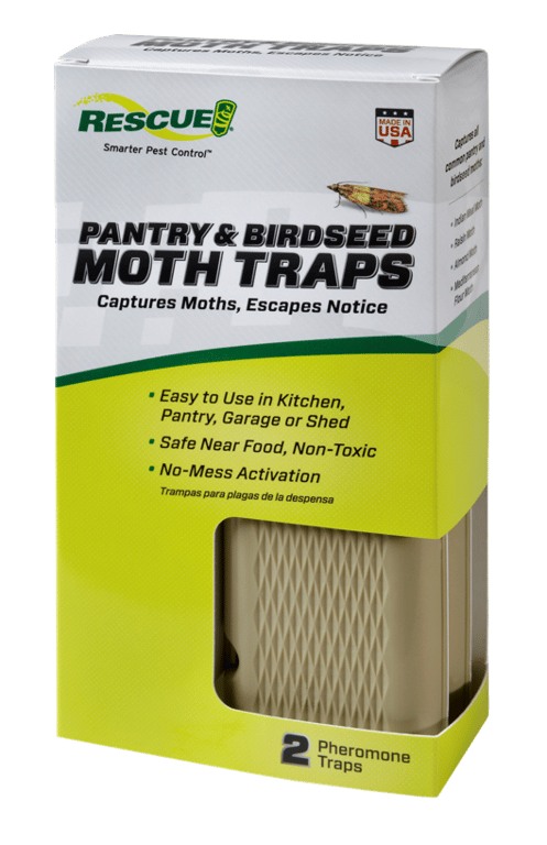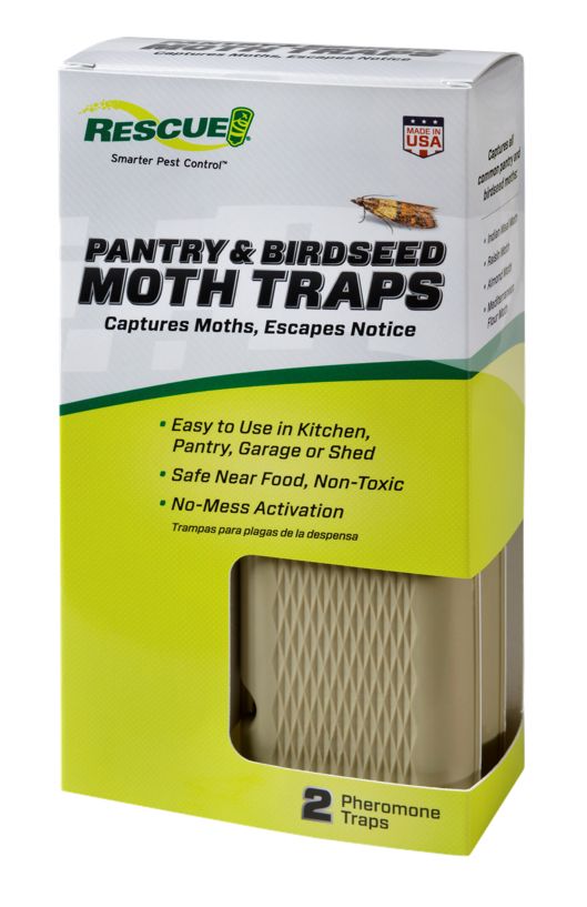 The RESCUE! Pantry & Birdseed Moth Trap uses a pheromone lure that attracts multiple species of moths. It’s easily activated with the lure disk that’s included with the package. Moths are lured by the pheromone and get stuck on the glue dot pattern on the inside of the trap.Specifications