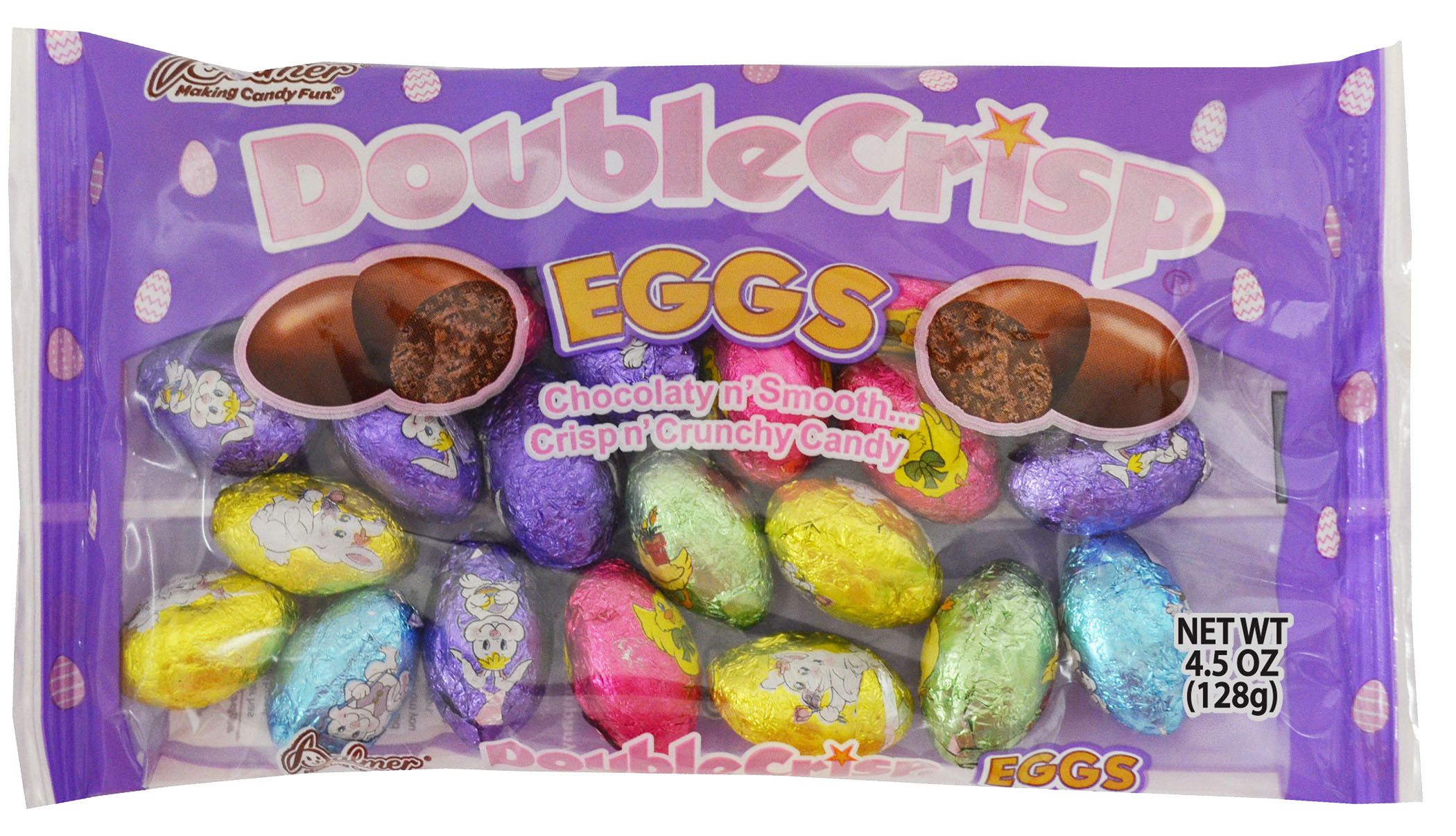 4.5 oz; EASTER THEMED FOIL PACKAGING; EGG SHAPED; MILK CHOCOLATE DOUBLE CRISP