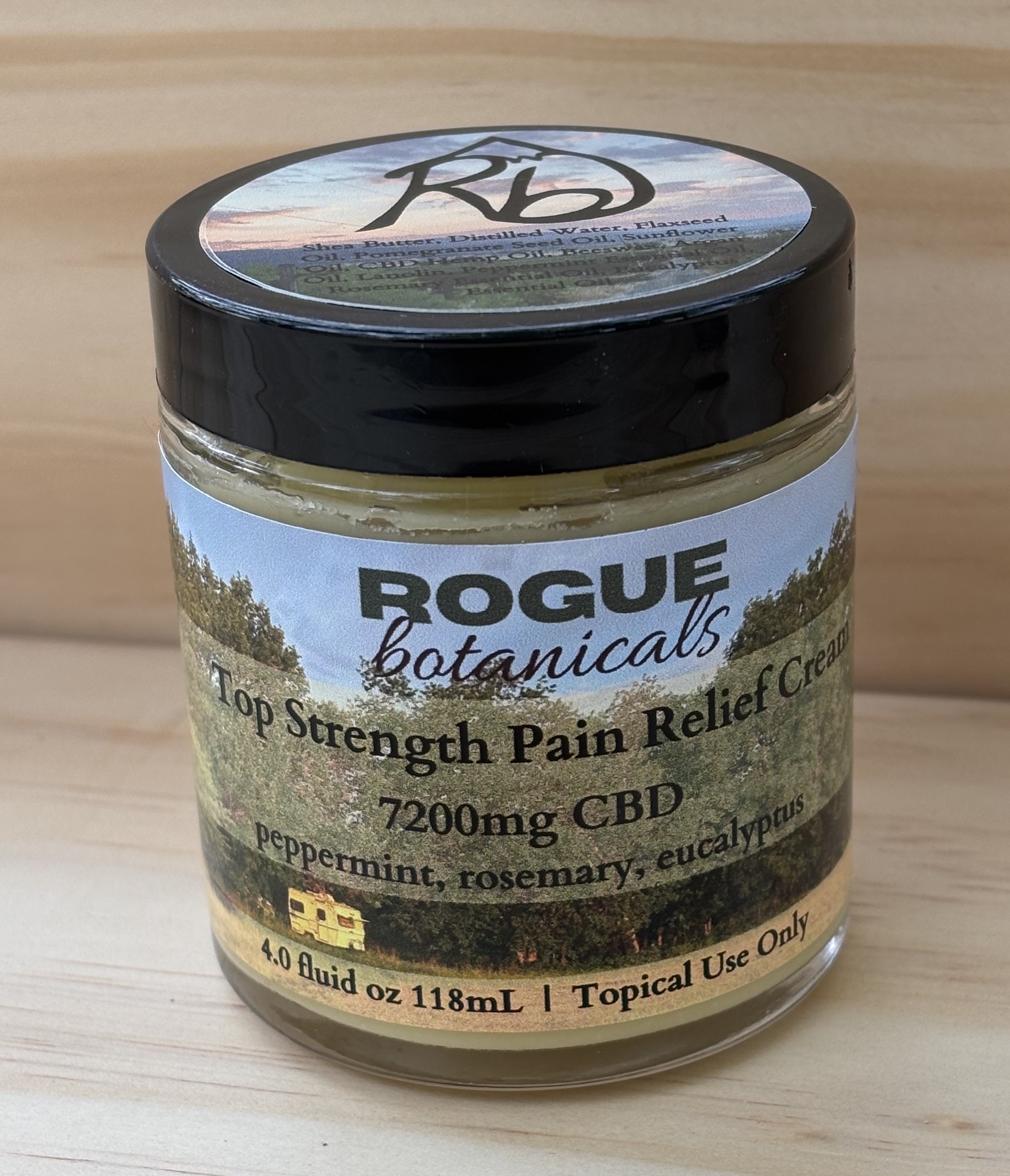 Rogue Botanicals top strength pain relief cream is made from hemp grown without any pesticides or artificial fertalizers. The hemp extract from this crop is then combined with other natural oils and ingredients like shae butter, beeswax, and essential oils to form a pleasantly scented, easy to apply cream. Unlike other creams on the market, we make sure there is a high concentration of CBD. In fact, our cream is at least 5 to 10 times stronger than anything else on the shelf.Specifications