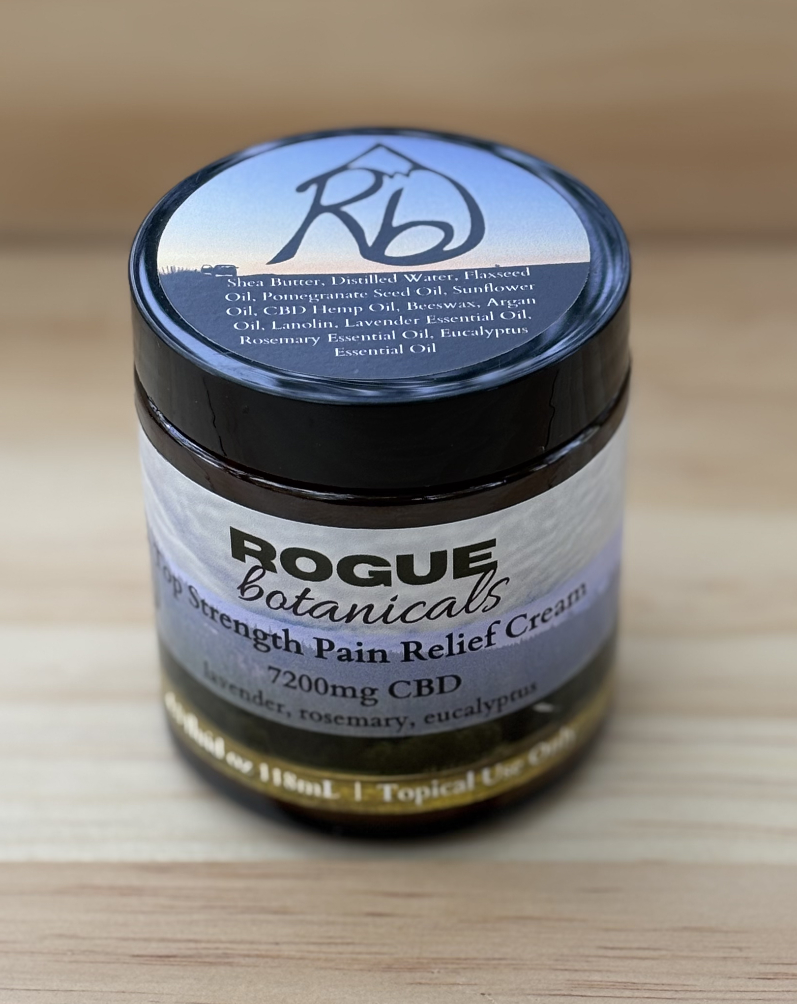 Rogue Botanicals top strength pain relief cream is made from hemp grown without any pesticides or artificial fertalizers. The hemp extract from this crop is then combined with other natural oils and ingredients like shae butter, beeswax, and essential oils to form a pleasantly scented, easy to apply cream. Unlike other creams on the market, we make sure there is a high concentration of CBD. In fact, our cream is at least 5 to 10 times stronger than anything else on the shelf.Specifications