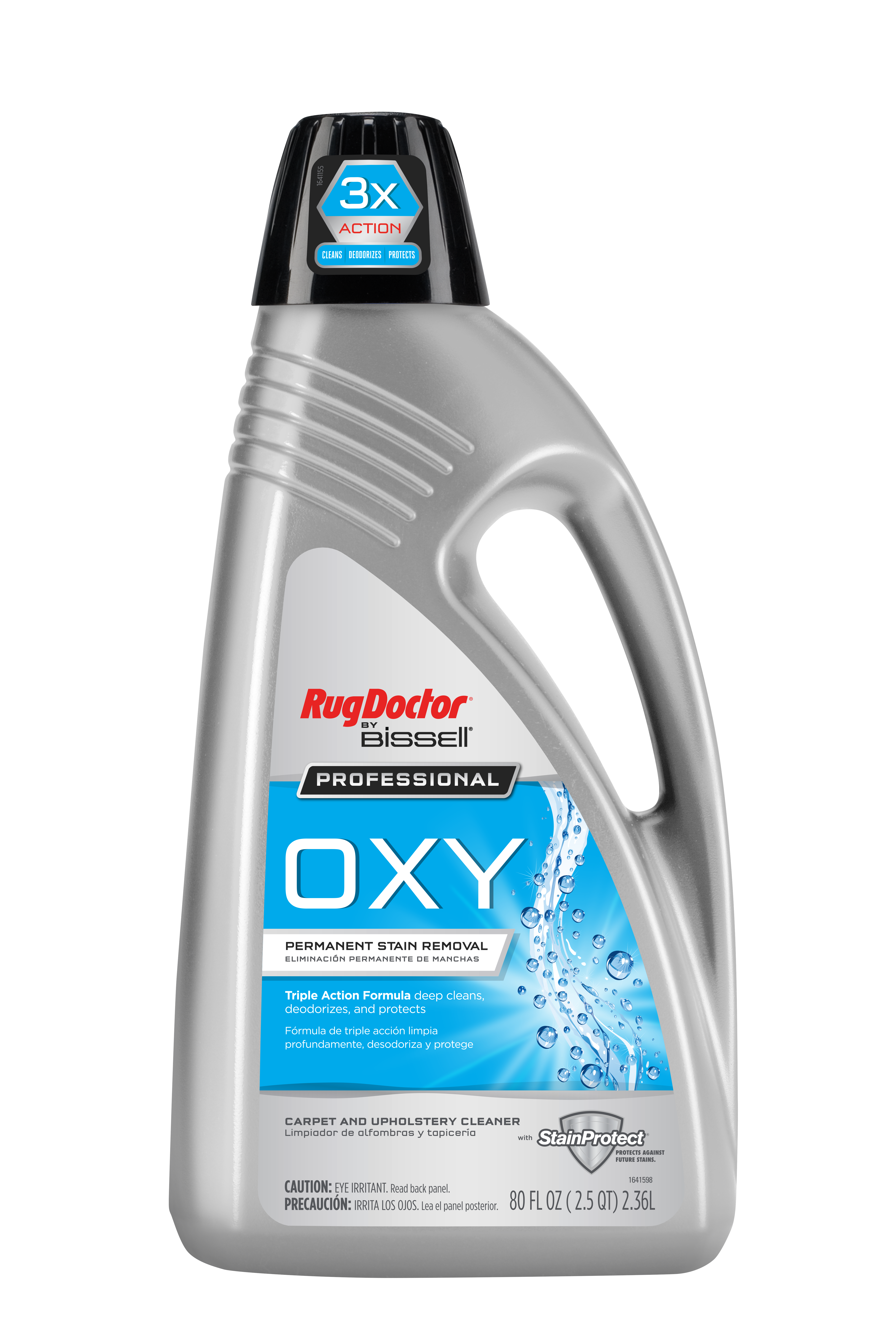Oxy Carpet Cleaner 80oz is scientifically engineered to fight old and new stains. Includes a professional strength pro-enzymatic formula that deep cleans up tp 24 hours to permanenty, to remove stains from soft surfaces. Spot block technology in the formula repels dirt and protects carpet for a long-lasting clean. For a professional-grade clean use this solution with any Rug Doctor rental machine or a deep cleaning machine.Specifications