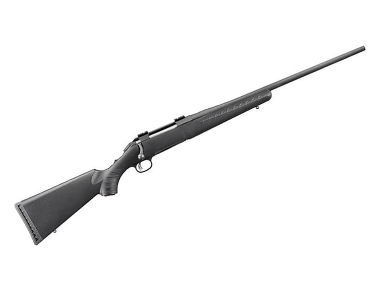 Ruger's American Rifle offers minute-of-angle accuracy that can make every hunt a success. The one-piece, three-lug bolt with 70 degree throw provides ample scope clearance and utilizes a full diameter bolt body and dual cocking cams for smooth, easy cycling. Its patent-pending Power Bedding, integral bedding block system positively locates the receiver and free-floats the barrel for outstanding accuracy. The ergonomic, lightweight synthetic stock with soft rubber buttpad is designed for quick, easy handling and blends a classic look with modern forend contouring and grip serrations. The American Rifle also has a Ruger Marksman adjustable trigger, cold hammer-forged barrel, and a tang safety. This Standard 243 Remington model has a 22" matte black barrel, black synthetic stock, rotary magazine, and sling swivel studs. IF "OUT OF STOCK" IS DISPLAYED: Please contact your local Bi-Mart for possible store transfer/special order options.Specifications