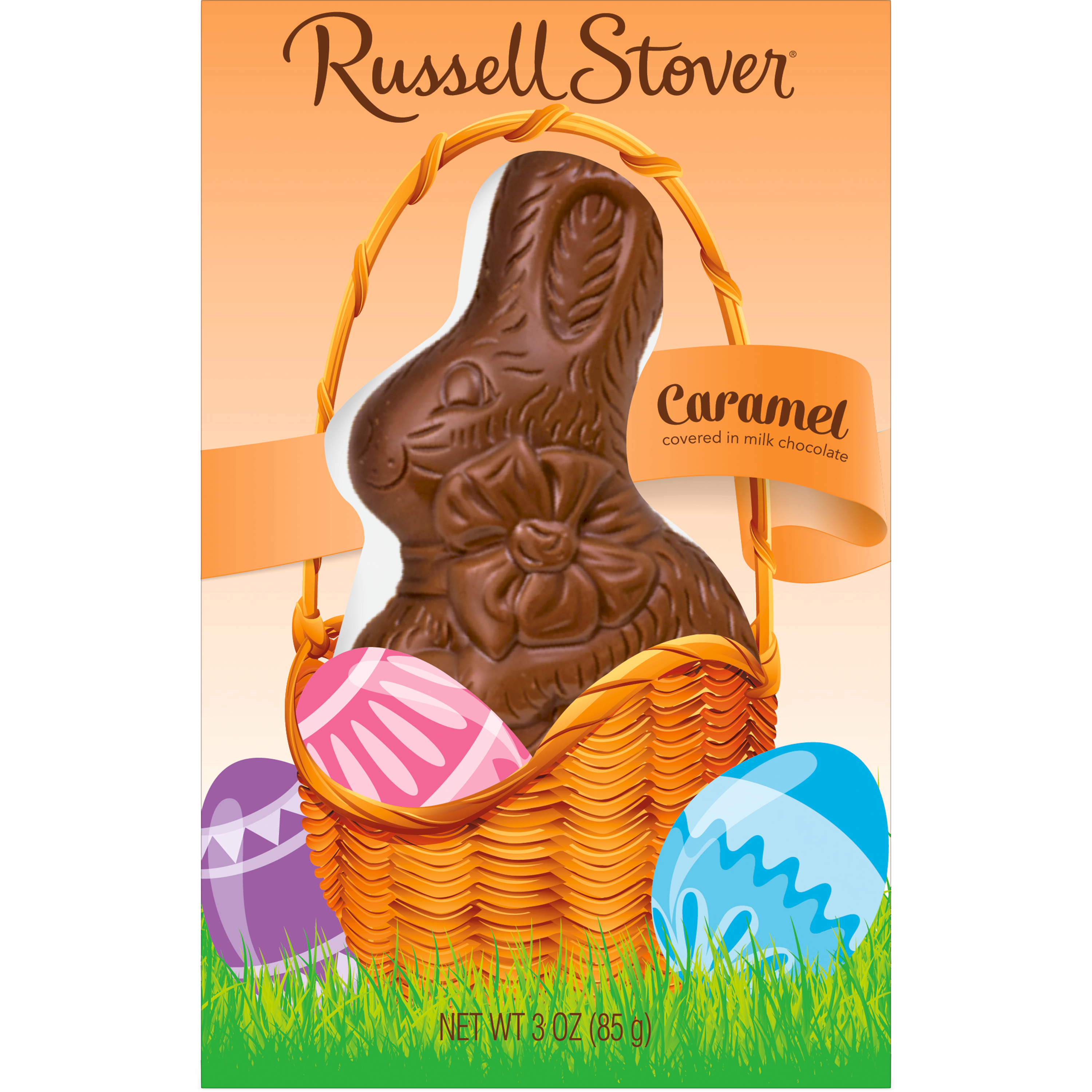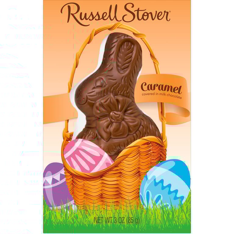 3 OZ; Caramel: Hop to it this Spring with our caramel rabbit. A classic symbol of springtime and Easter, this bunny is made with rich, buttery caramel drenched in our world famous milk chocolate; Contains Milk, Soy; Making Life Sweeter: Russell Stover is committed to making delicious, gift-worthy chocolates perfect for Christmas, Valentine's Day, Mother's Day, Father's Day, Birthdays, Graduations, and Anniversaries; May Contain Peanuts, Tree Nuts, Eggs, Wheat; Ready to Gift: Already tastefully boxed and ready to wrap, this 3 ounce bunny is a welcome addition to any Easter basket, Easter egg hunt or holiday centerpiece. Make Easter Happy