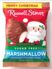 Chocolate Candy Bar; Christmas Ornament Shaped; Filled with Marshmallow; Sugar Free