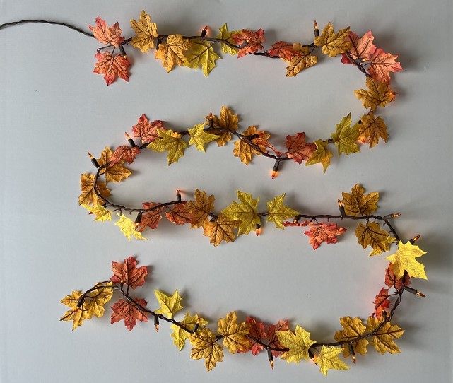 Illuminate as you celebrate Autumn with this lighted fall leaves garland. Great for fireplace mantel, staircase or for draping wherever you like at Autumn party, Fall wedding reception or home.Specifications