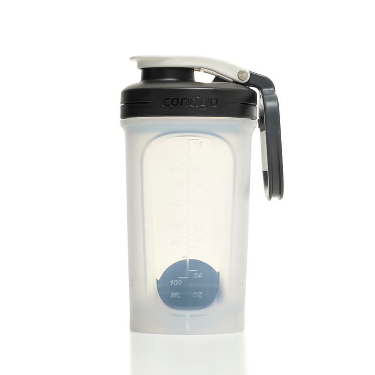 Grab the Contigo Fit Plastic Shake & Go 2.0 Shaker Bottle. Salt White, 20 fl oz. to power up before your workout or recharge while you wind down. Add your favorite protein, energy, or recovery drink to the shaker bottle and attach the leakproof lid. The improved agitator ball makes even mixing easy. This protein shaker’s carabiner handle can rotate so it stays out of the way and doubles as a clip that attaches the bottle to your gym bag. The cover flips open 180° for easy use while multitasking and pops into your car cup holder for on-the-go drinking. The shaker bottle and leakproof lid are top-rack dishwasher-safe for easy cleaning.Specifications