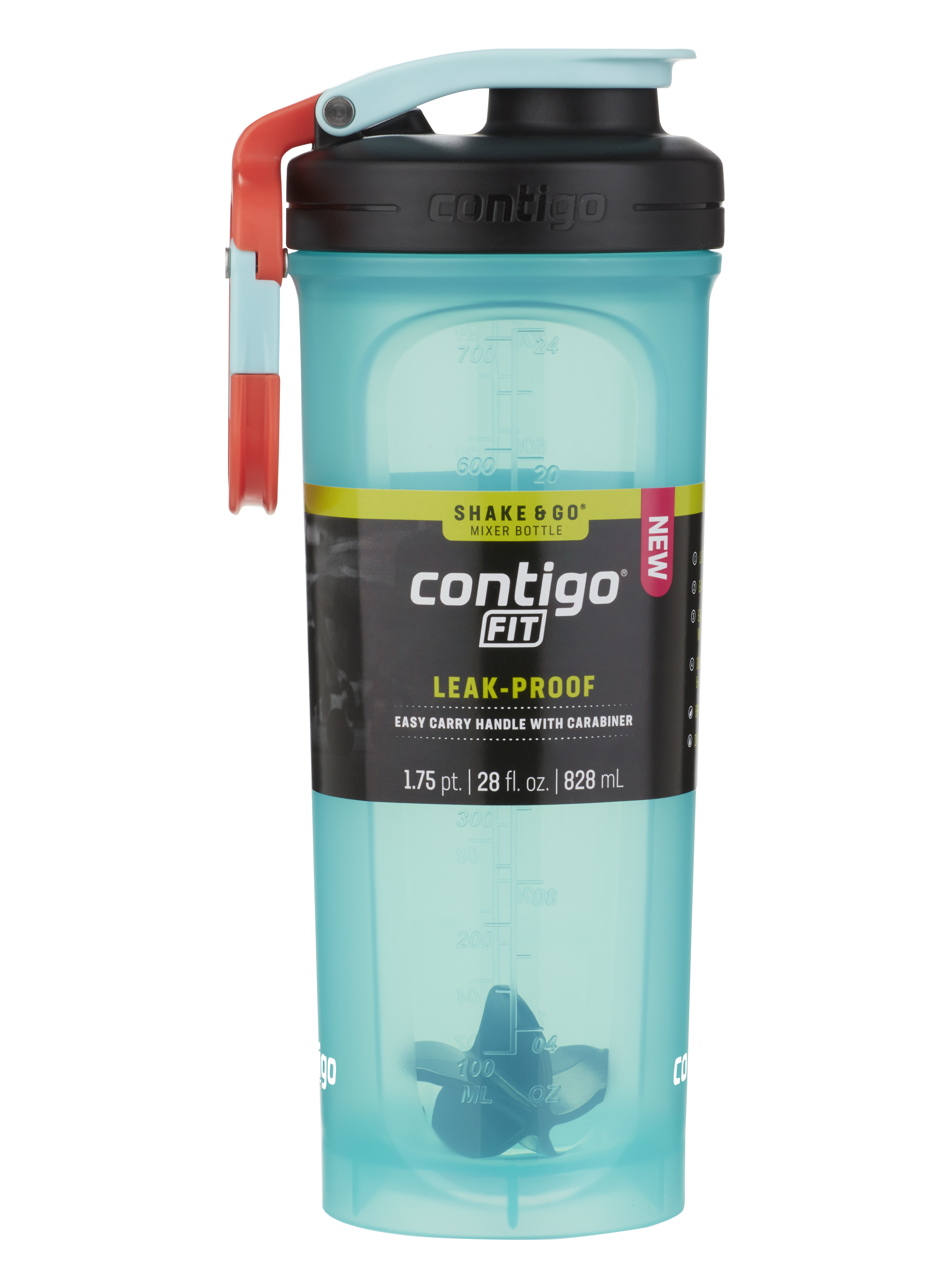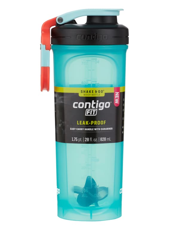 Grab the Contigo Fit Shake & Go 2.0 28 Oz. to power up before your workout or recharge while you wind down. Add your favorite protein, energy, or recovery drink to the shaker bottle and attach the leakproof lid. The improved agitator ball makes even mixing easy. This protein shaker’s carabiner handle can rotate so it stays out of the way and doubles as a clip that attaches the bottle to your gym bag. The cover flips open 180° for easy use while multitasking and pops into your car cup holder for on-the-go drinking. The shaker bottle and leakproof lid are top-rack dishwasher-safe for easy cleaning.Specifications