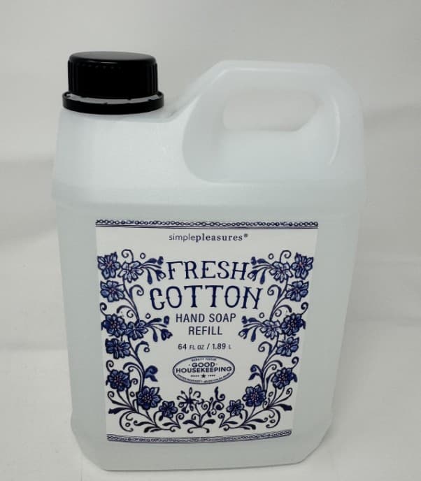 This 64 oz. hand soap jug is fresh cotton scented. It looks great in a kitchen or bathroom and is a great value item.Specifications