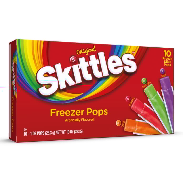 Skittles Original Freezer Bars come in four original Skittles flavors that include Orange, Strawberry, Green Apple and Grape. These delicious Rainbow Freezer pops are gluten free, fat free and artificially flavoredSpecifications