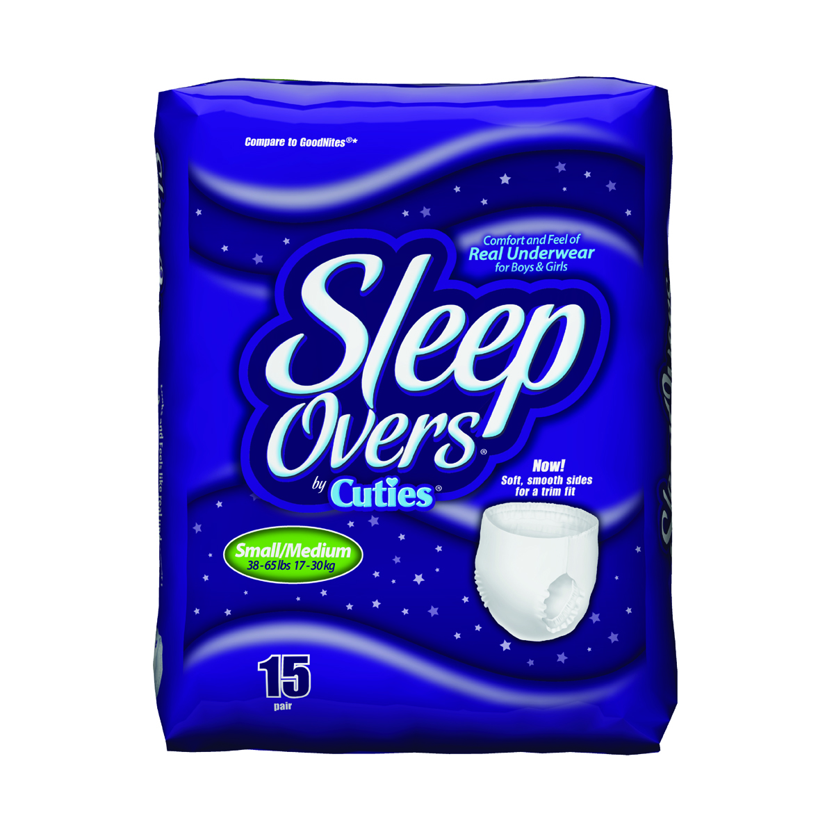 White Small & Medium Cuties Sleep Overs Youth Heavy Absorbent Underwear.Specifications