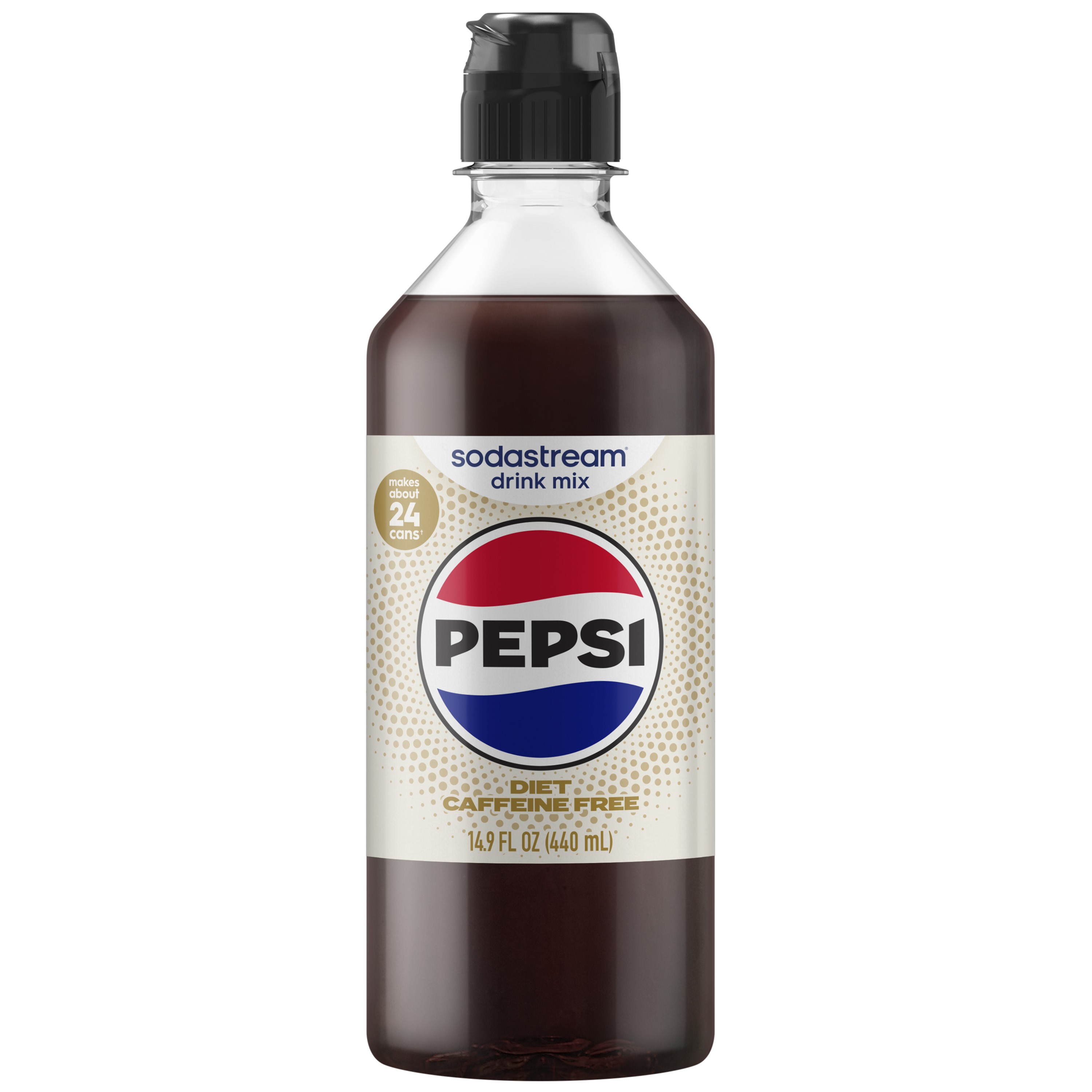 Discover the fizz-tastic world of SodaStream with the Caffeine Free Diet Pepsi beverage mix. Perfect for those who love crafting their own soda, this mix transforms your SodaStream sparkling water into the iconic taste of Caffeine Free Diet Pepsi in mere seconds. Each 14.9 oz bottle creates 24 - 12 oz servings.Specifications