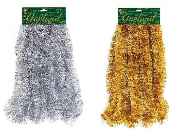Soft & Silky Garland. 15 FT long. Flame-retardant and tarnish-resistant. Comes in silver or gold.Specifications