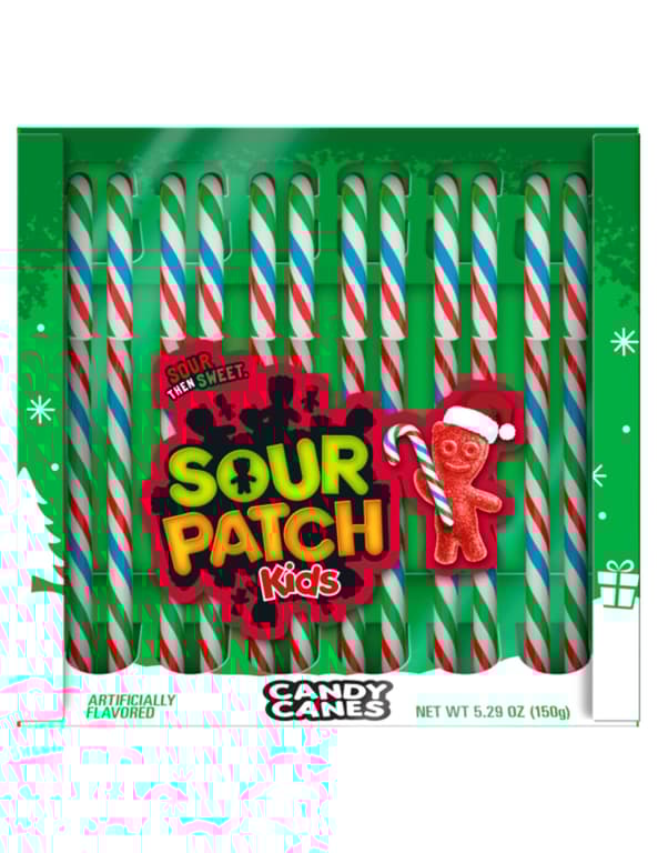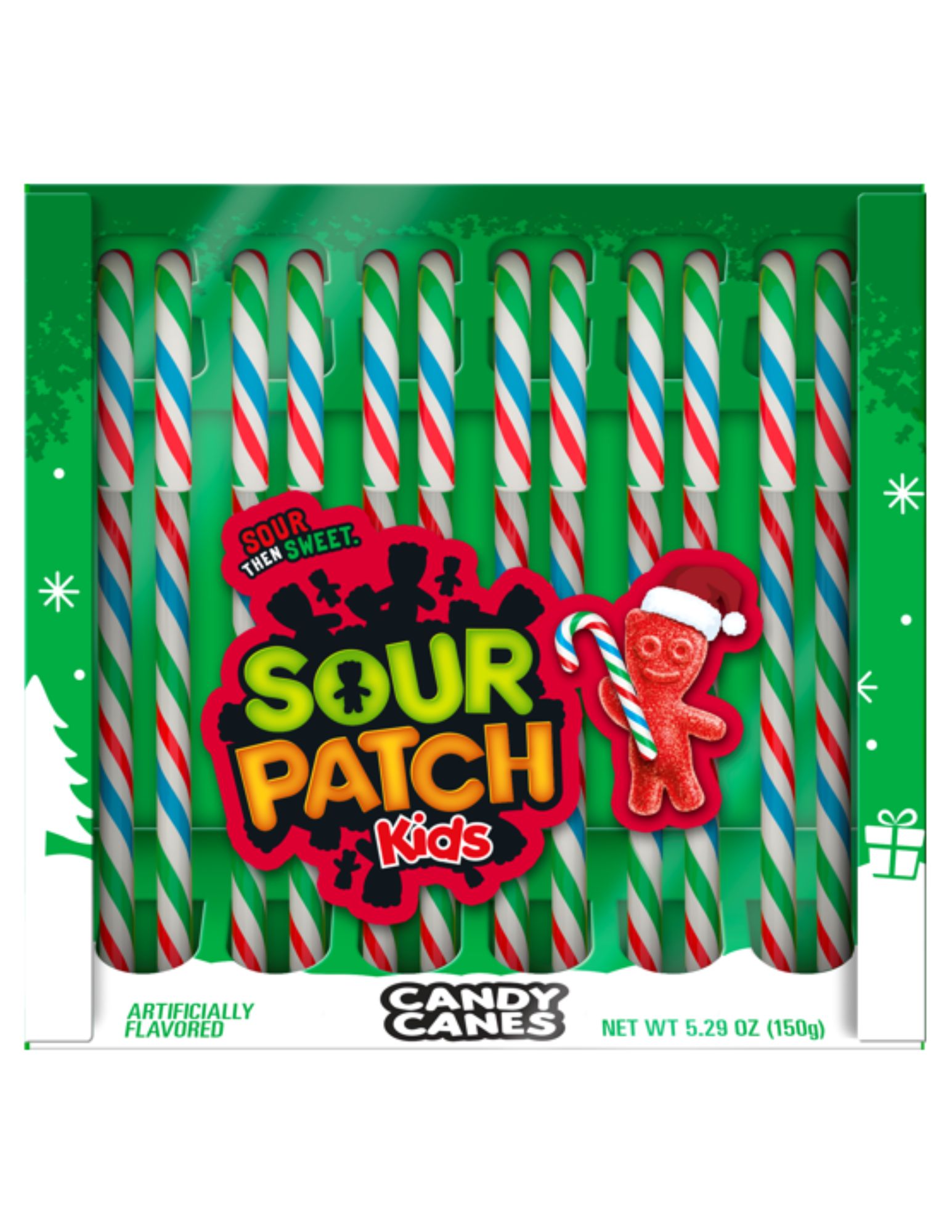 SPREAD A LITTLE MICHIEVOUS HOLIDAY CHEER WITH SOUR PATCH CANDY CANES. THESE CANDY CANES ARE A PERFECT STOCKING STUFFER FOR THOSE ON YOUR NAUGHTY AND NICE LISTS BECAUSE THEY ARE SOUR THEN SWEET. THEY FEATURE COLORFUL CANDY STRIPES AND CLASSIC SOUR PATCH FRUIT FLAVORS.Specifications