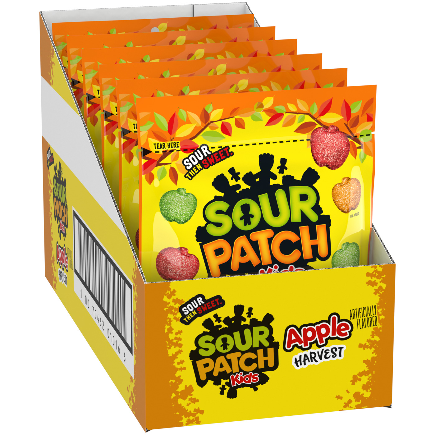 MAKE YOUR HOUSE THE GO TO TRICK OR TREATING SPOT WITH SOUR PATCH KIDS APPLE HARVEST TREAT SIZE BAGS. THESE SOFT AND CHEWY CANDIES DELIVER JUICY MOUTHWATERING SWEET & SOUR FLAVORS IN PERFECTLY PORTIONED BAGS WHICH MAKES THEM IDEAL FOR TRICK OR TREATERS OR SNACKING ON THE GO.Specifications