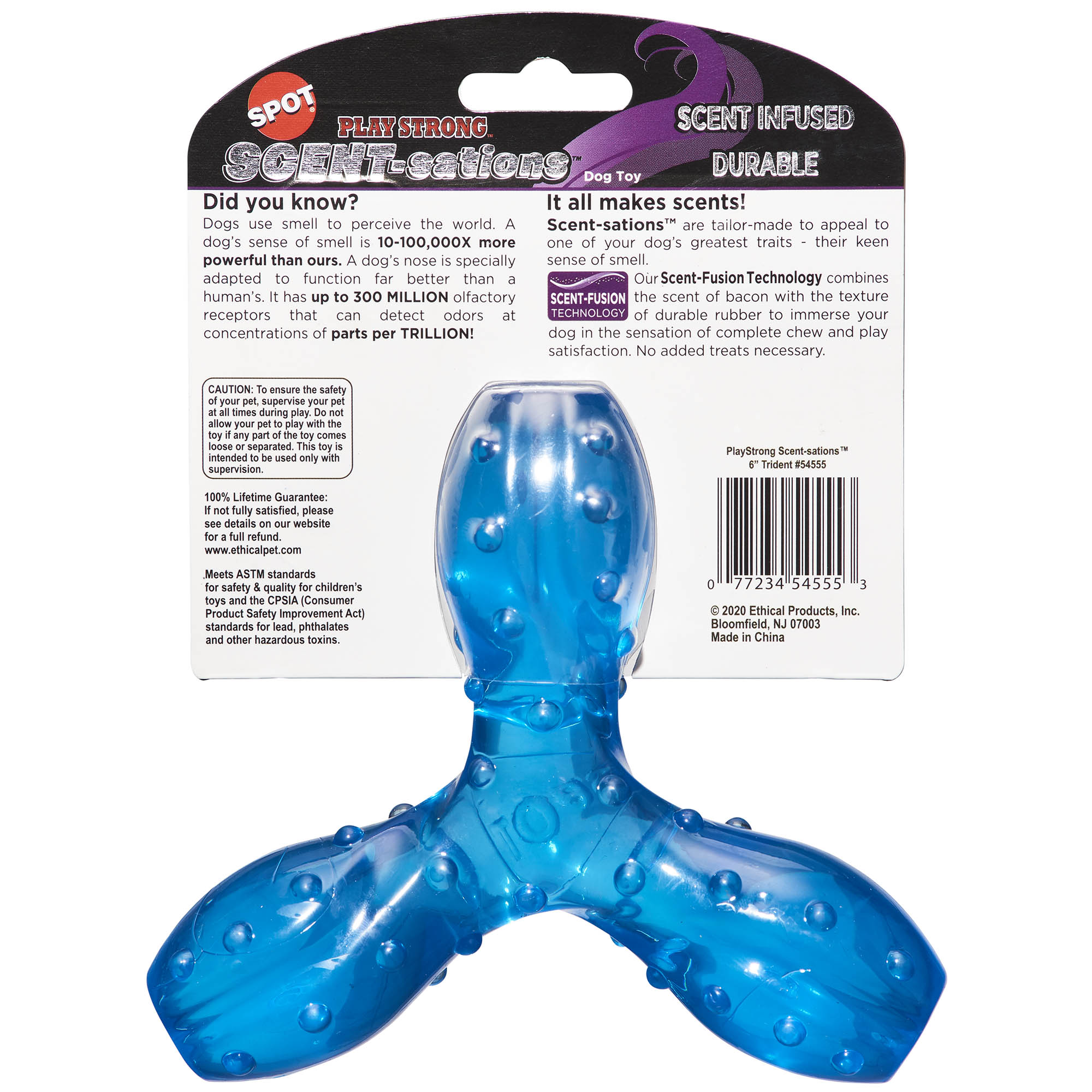 Scent-sations are tailor made to appeal to one of your dogs greatest traits - their keen sense of smell. Our Scent-Fusion Technology combines the scent of bacon with the texture of durable rubber to immerse your dog in the sensation of complete chew and play satisfaction. Nubs massage teeth and gums for a healthy mouth.Specifications