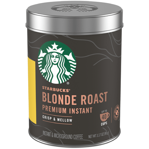 Instant & microground coffee. Crisp & mellow. Up to 40 cups. 100% Arabica coffee beans. Created by Starbucks coffee experts using the same high-quality 100% arabica beans we brew in our cafes, our Starbucks Blonde Roast is bright and complex with a crisp, sweet flavor. Ethically sourced, we carefully roast the beans, capturing the exceptional aroma and premium taste, so you can enjoy a delicious Starbucks coffee at home.Specifications