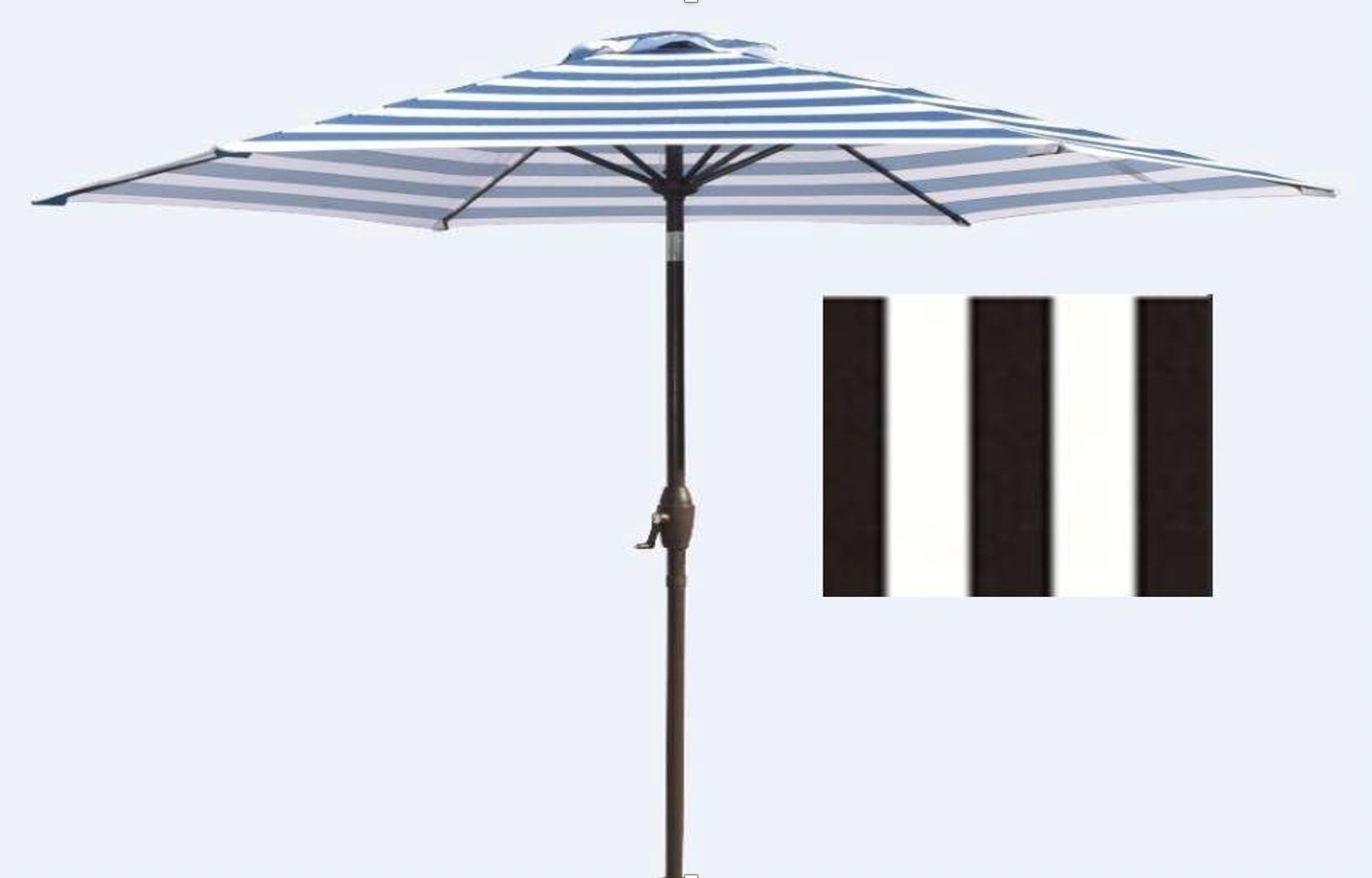 9' Diameter Patio Market Umbrella; Built-in Hand Crank to Raise and Lower the Canopy; Fade Reistant Polyester Fabric; Push Button Tilt function.; With Removable Lower Pole and Carry Bag.; Works with any standard height patio dining table.