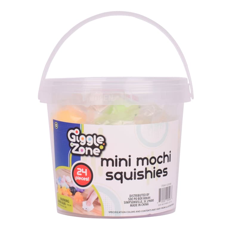 Squish, squeeze and poke the Mini Mochi Squishies for instant stress relief! Great for soothing anxiety, increasing focus and having fun. Kids will love the assortment of adorable characters. There are 24 squishy animals to choose from including an elephant, unicorn, star, bear, duck and more! Use these fidget toys for pretend play or as a prop for exciting games. Each is about 1.5 inches, so they're easy to keep in your pocket or backpack. When playtime is over, store the squishies in the included storage container. It even has a handle for on-the-go sensory play.Specifications