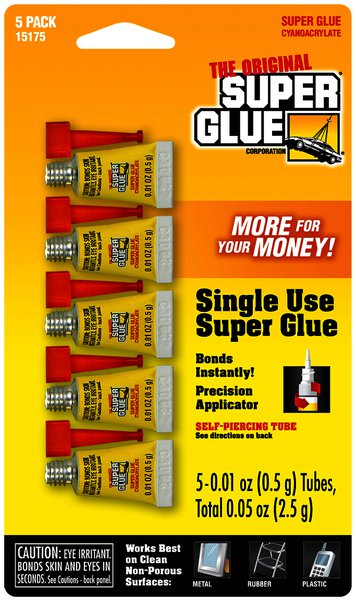 Original formula Super Glue forms the strongest bonds in tight joints between clean breaks or on smooth surfaces. Best used with non-porous materials such as metal, rubber, ceramics, jewelry and more. The glue bonds instantly and sets in seconds.Specifications