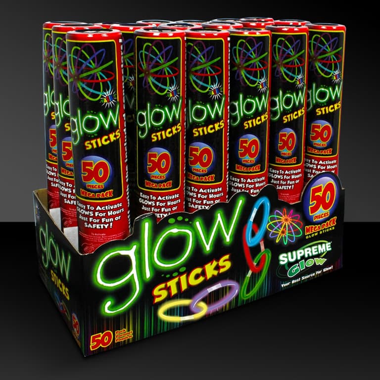 Grab some glow on the go! Our fun and easy to use glow bracelets come in brightly assorted colors in a great looking retail ready tube that you can take anywhere you go! Take them camping, to dance parties and other nighttime events. Simply crack and shake to activate glow then connect to form bracelets or fun shapes for hours of fun! Glow bracelets comes with 10 purple, 10 blue, 10 green, 10 yellow and 10 red glow bracelets and 50 connectors (not attached). Remember, glow bracelets only glows once for up to 10 hours and are a one time use only. Our tube of 50 Assorted Color Glow Bracelets are priced per tube. Please order in increments of 1 tube.Specifications