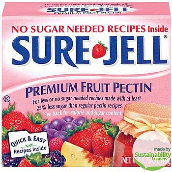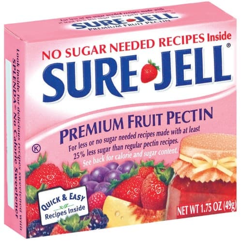 Sure-Jell Premium Fruit Pectin is a kitchen staple for homemade jams and jellies. America's original since 1934, this premium gelling agent makes a great food thickener. Simply mix this powdered fruit pectin into traditional cooked or quick freezer jams to help your preserves thicken for the perfect set. Use it in less or no sugar strawberry jam, elderberry jelly or apricot jam, or try one of the quick and easy recipes inside the package. This premium pectin is a shelf-stable addition to your pantry's stabilizers and thickeners. This dry pectin powder will shorten the time needed to for homemade jams and jellies to set. Use your favorite fruits to create delicious homemade jams, and try one of the quick and easy recipes included in this pack!Specifications