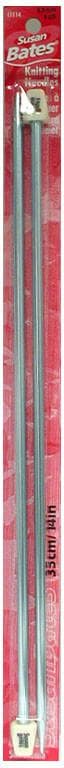 Susan Bates Silvalume Knitting Needles are lightweight, yet strong and durable. The knitting stitches slide effortlessly on and off making knitting easier and more enjoyable. 14" Size 9- Needles are made from an aluminum product that goes through a special process which gives them a velvet-smooth finish and beautiful color.Specifications