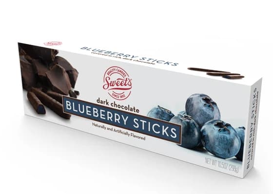 SWEET CANDY COMPANY'S CHOCOLATE COVERED BLUEBERRY STICKS ARE THE PERFECT CANDY TO EAT YOURSELF OR GIFT TO A FRIEND. SOFT, BLUEBERRY FLAVORED CENTERS BLANKETED IN REAL DARK CHOCOLATE ARE ALWAYS APPRECIATED AND ENJOYED.Specifications