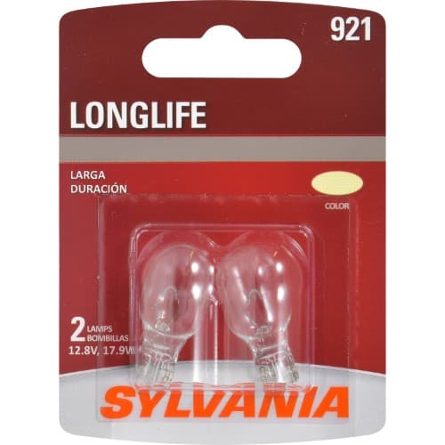 Exterior Bulb. Sylvania 921 Long-Life Miniature Light Bulbs are designed to be durable, low maintenance and provide enhanced safety. These lamps are suitable for various automotive applications, including parking lights, turn lights, brake lights, back-up lights and interior lights. They feature a robust filament and proprietary gas mixture that results in much longer service life than basic replacements. These Sylvania car bulbs are legal for on-road use and engineered to withstand sizable amounts of road shock and vibration. They will fit a range of vehicle models and can be easily installed and removed. These miniature car bulbs come packaged on a carded twin pack.Specifications